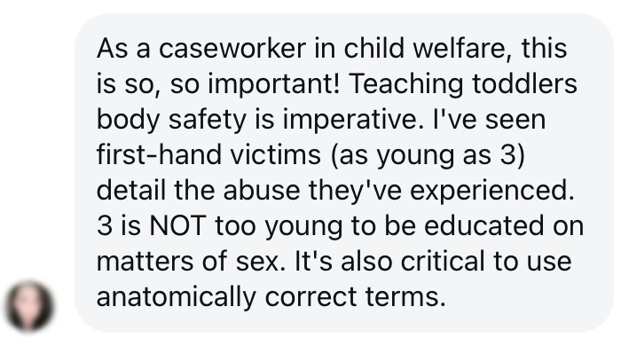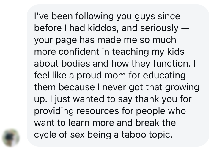 We have content for kids ages 3-17! 3 might seem really young, but there are some easy ways to start introducing age-appropriate information about bodies, safety, and other topics. Plus, it often feels easier to start talking to a little kid than to a teenager, so it gives you tons of time to get more comfortable before the heavier conversations.