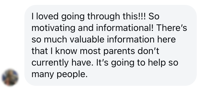 “I REALLY want to get this right for my kid… I REALLY want to do better than my parents did. I know how important it is. But right now it feels like there are 75 super important things and topics that I have to learn how to be a halfway decent parent to her. The idea of taking a course right now makes me want to curl up in a ball because I don’t know how I'll find the time and the mental energy to do it.”